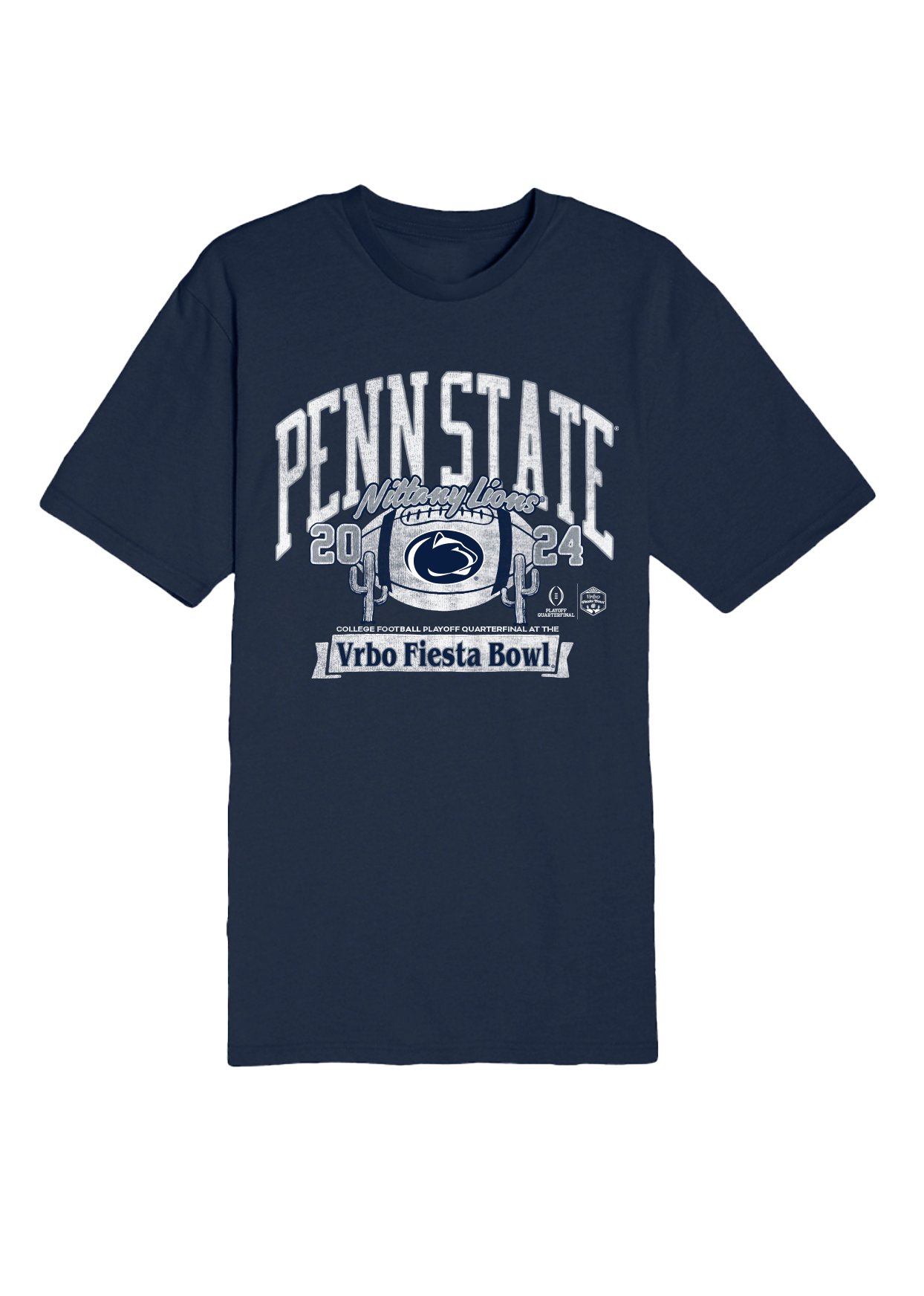 Get ready to cheer on the Penn State Nittany Lions with this official 2024 CFP Vrbo Fiesta Bowl T-Shirt! Featuring a bold, retro-inspired design, this tee highlights Penn State’s journey to the College Football Playoff Quarterfinal with classic lettering, a football graphic, and signature Southwest cacti details. Perfect for die-hard members of Nittany Nation who love to show their pride in style.