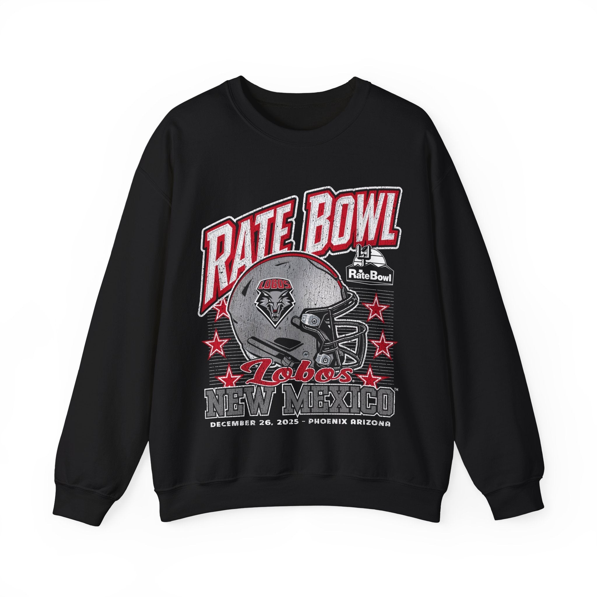 Rate Bowl 2025 – University of New Mexico Lobos Vintage Helmet Beveled Crewneck Sweatshirt