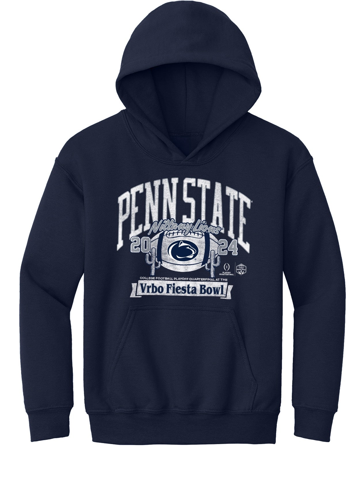 Celebrate the 2024 CFP Vrbo Fiesta Bowl with this must-have Penn State Nittany Lions Hoodie! Featuring a dynamic retro design with bold lettering, a striking football graphic, and Southwest-inspired cacti details, this hoodie perfectly captures the excitement of Penn State’s journey to the College Football Playoff Quarterfinal. Whether you’re a lifelong member of Nittany Nation or new to the fandom, this hoodie lets you cheer in style.